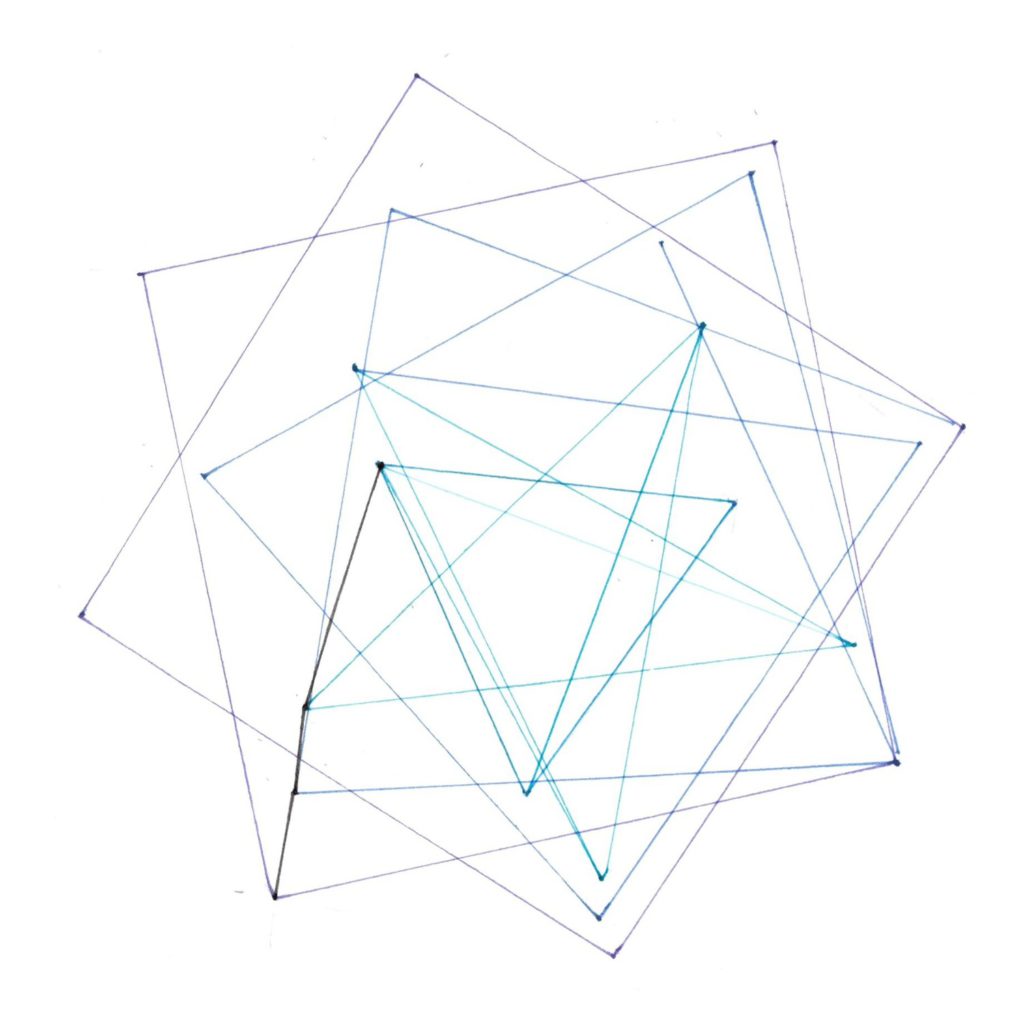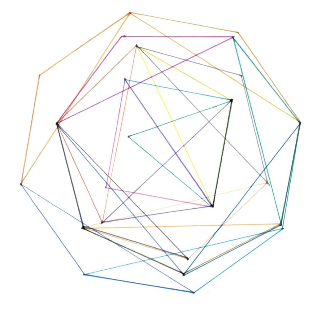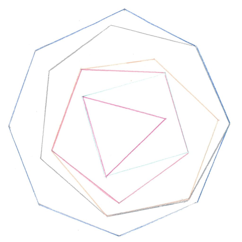 Ses variations sont toutes produites à partir d’un enchevêtrement de polygones réguliers, tantôt en utilisant leurs sommets, tantôt le centre de leurs cercles circonscrits respectifs ou encore certaines diagonales.