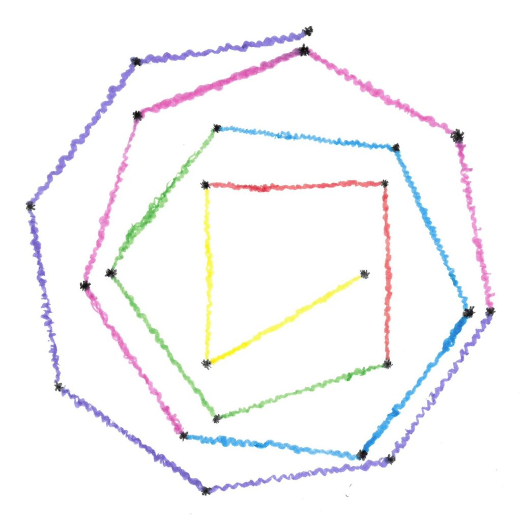 • compétences artistiques : imaginer une variation du thème dans laquelle les polygones n’ont pas totalement disparu
