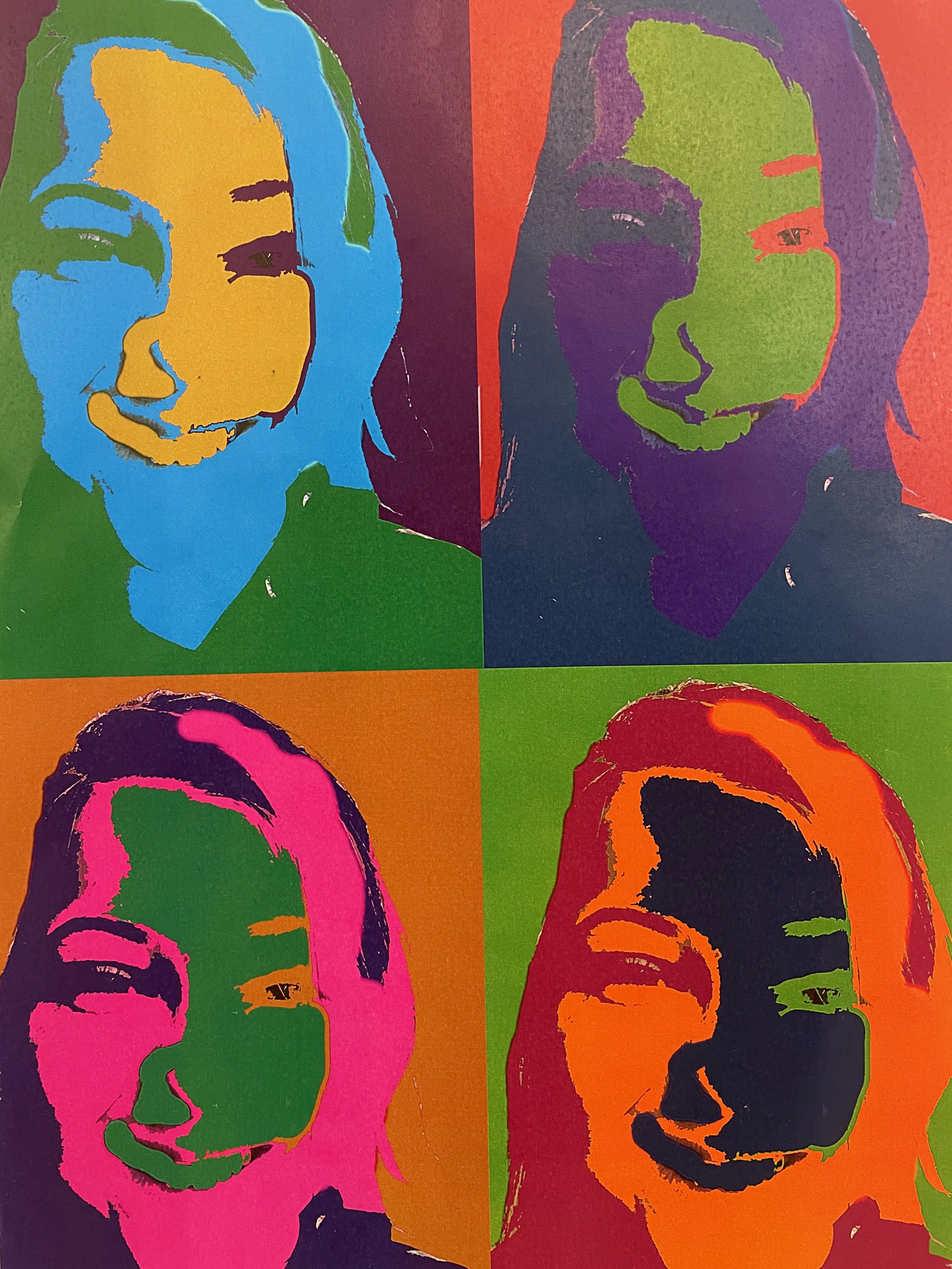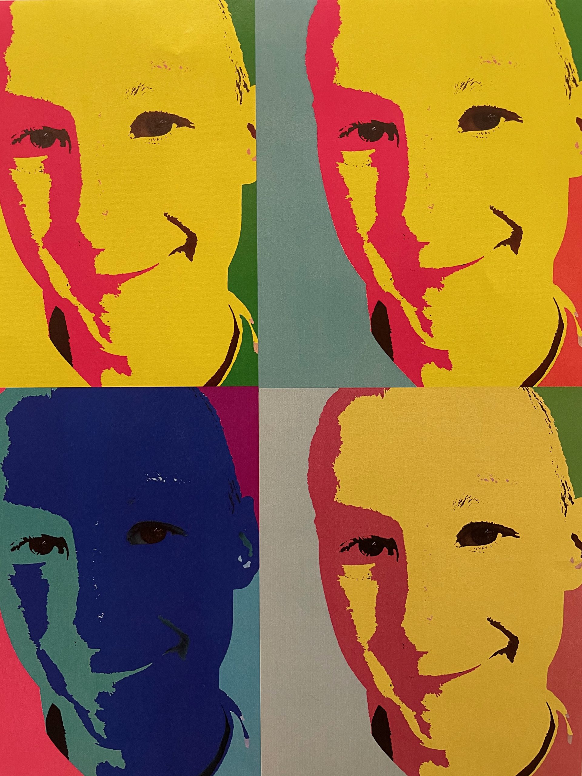Nous nous sommes aussi inspirés d‘Andy Warhol pour créer notre portrait en quatre versions de couleurs différentes.